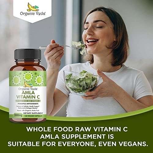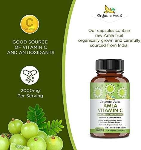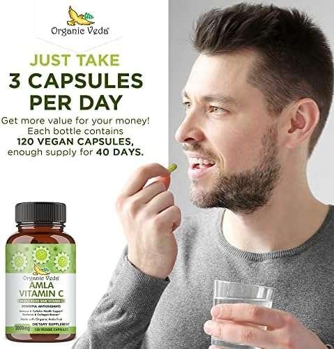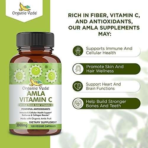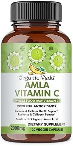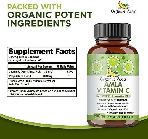 Organic Veda Amla Capsules Natural Vitamin C Supplements – Organic Whole Food Vitamin C Amla Powder for Immunity, Skin Radiance, Antioxidants Wellness – Non GMO, Raw Vegan Vitamin C Capsules 120