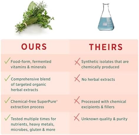ENERGY, IMMUNE SUPPORT, & MORE: Core vitamins and minerals promote energy and strength; herbal adaptogens and botanical extracts provide support for stress, immune health, brain health, and more.