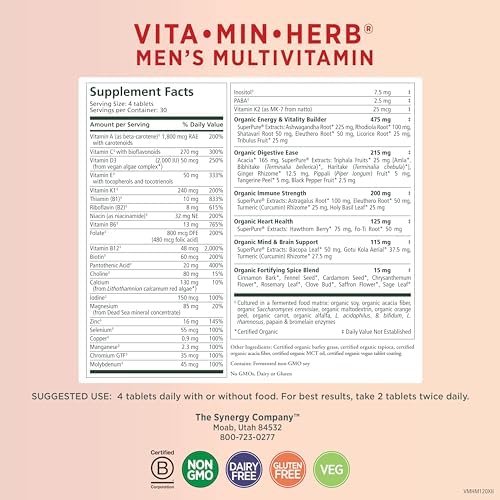 Be the first to review “PURE SYNERGY Vita·Min·Herb for Men | Men’s Comprehensive Multivitamin Supplement | Made with Organic Whole Food Non-GMO Ingredients | Daily Energy & Immune Support (120 Tablets)”